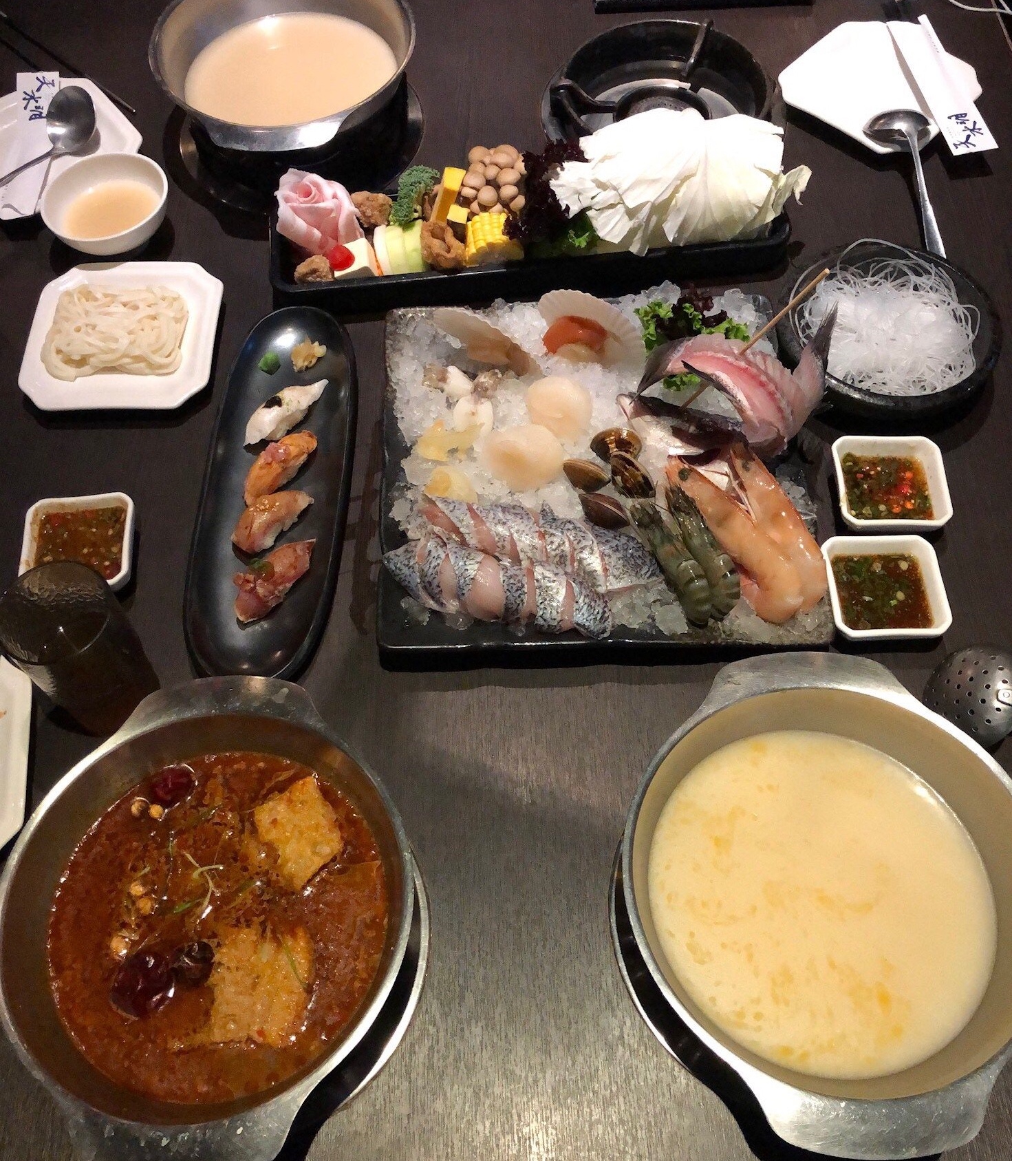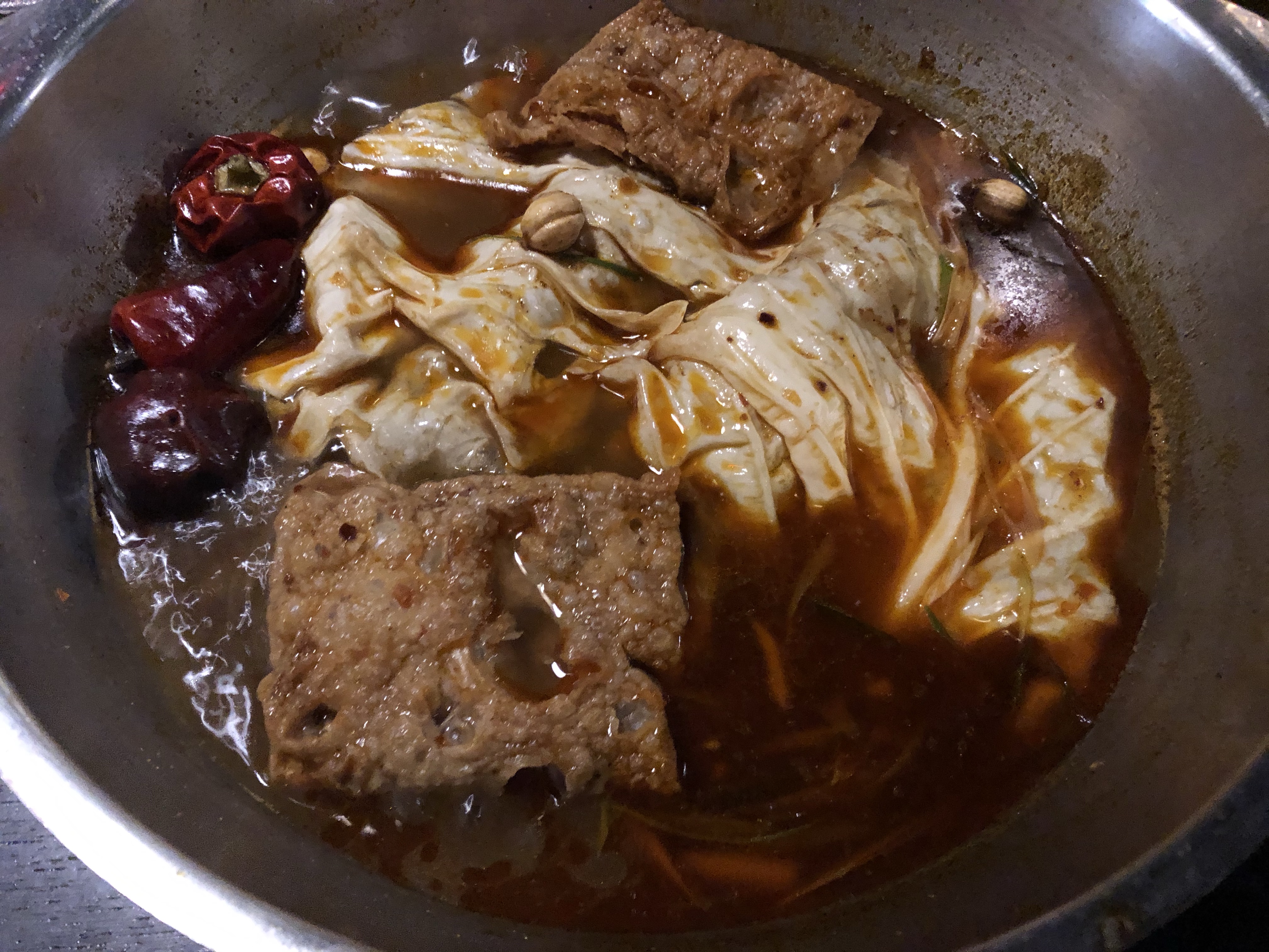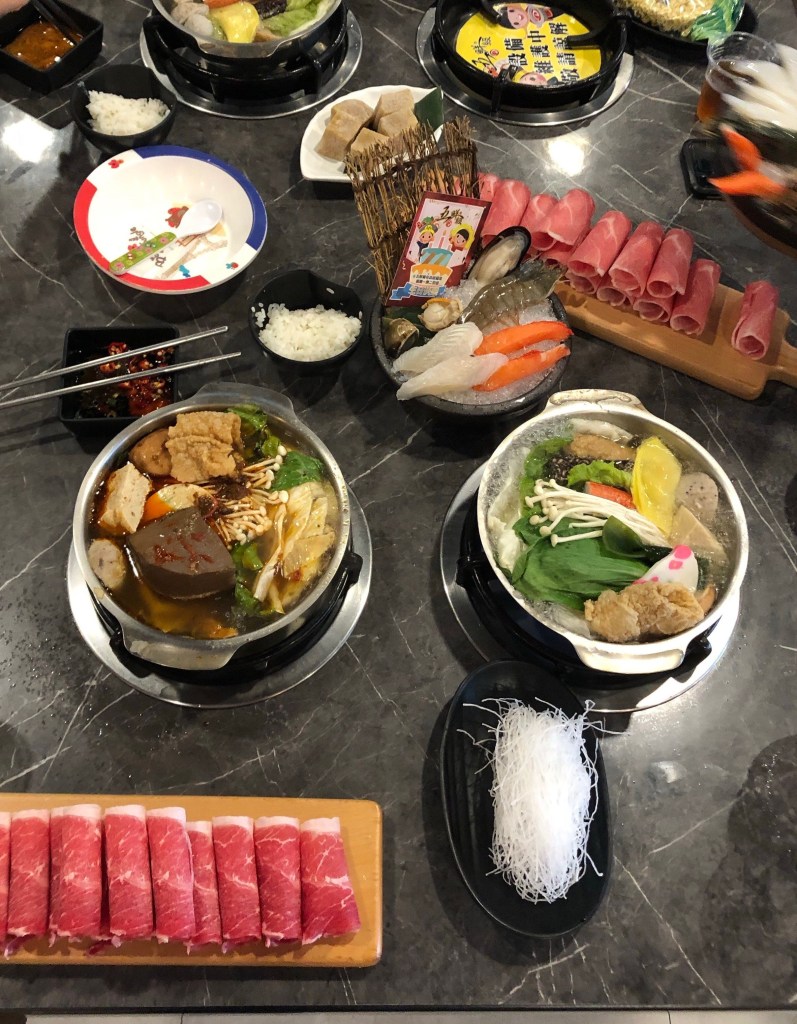 There’s a chill in the air these days and the hot pot is the perfect go to meal. In fact, I would wager it is the most common restaurant format in Taiwan. We are not experts yet on the varieties but one can find individual or shared pot formats with places specializing or not specializing in a particular cuisine. We have seen Korean, Japanese, Malaysian, Szechuan, Thai, and more. Still working through all these flavors. The top favorites so far are bone broth and mala (Szechuan) broth.