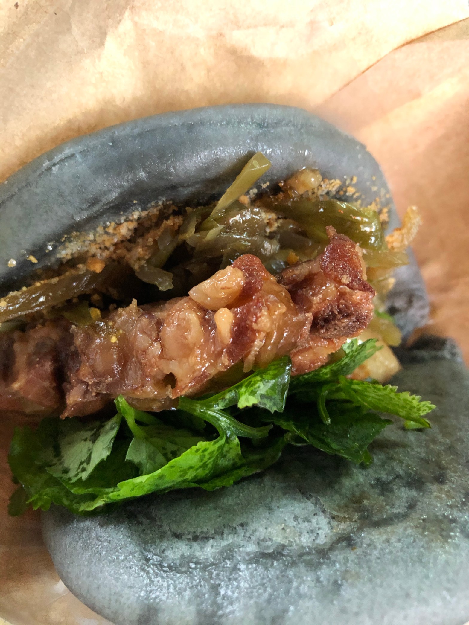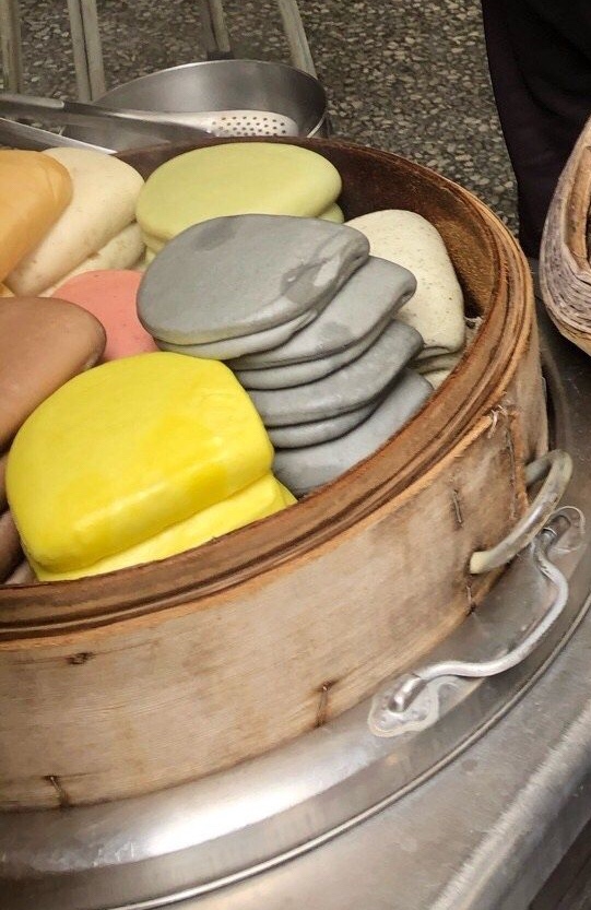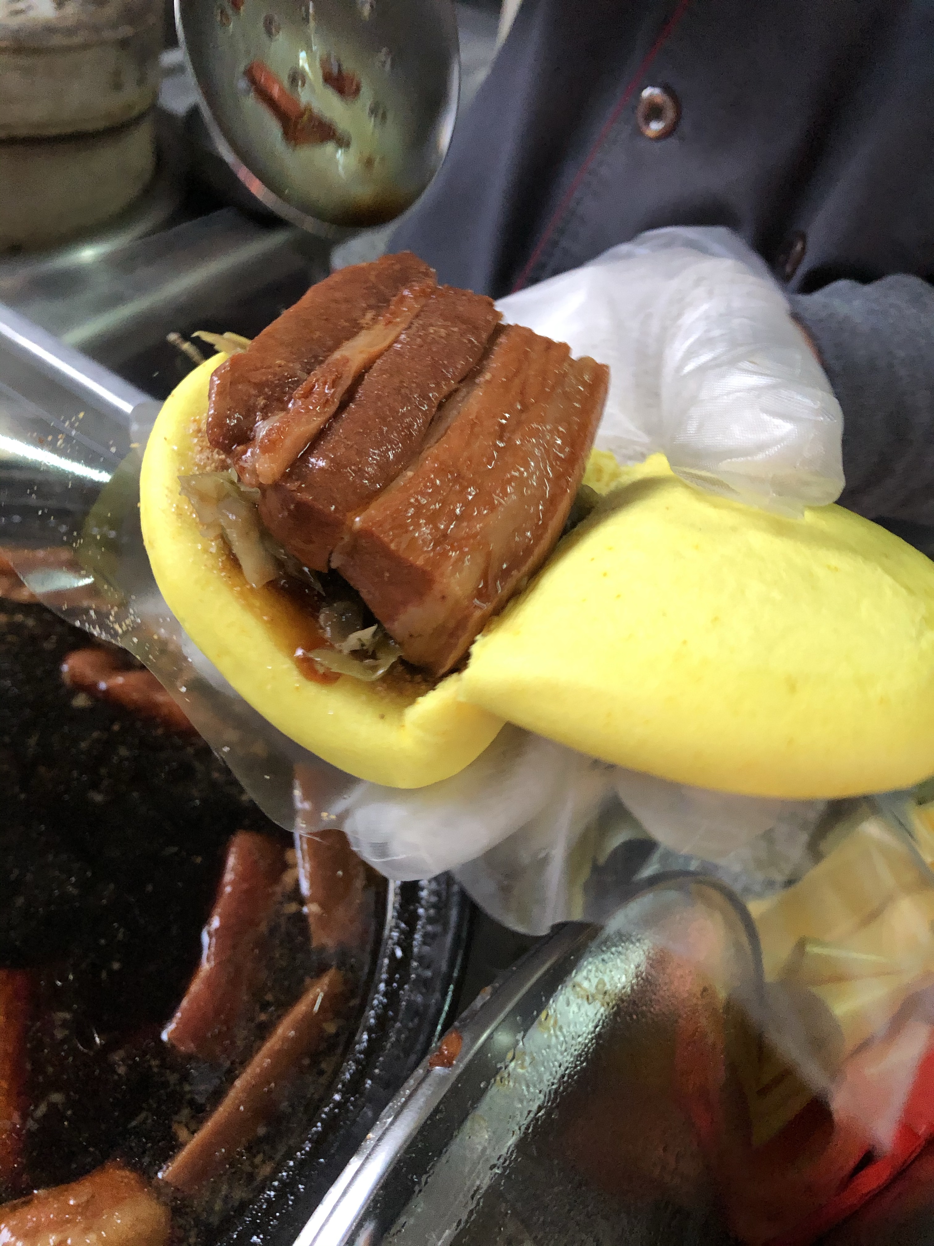 The best version of it so far we have had is at a decades old stall in Kaohsiung that is a one man show. He offers them in a large array of flavored steamed buns (e.g. black sesame, turmeric, charcoal, matcha, etc.) and his pickled vegetables are different from any others we have tasted.