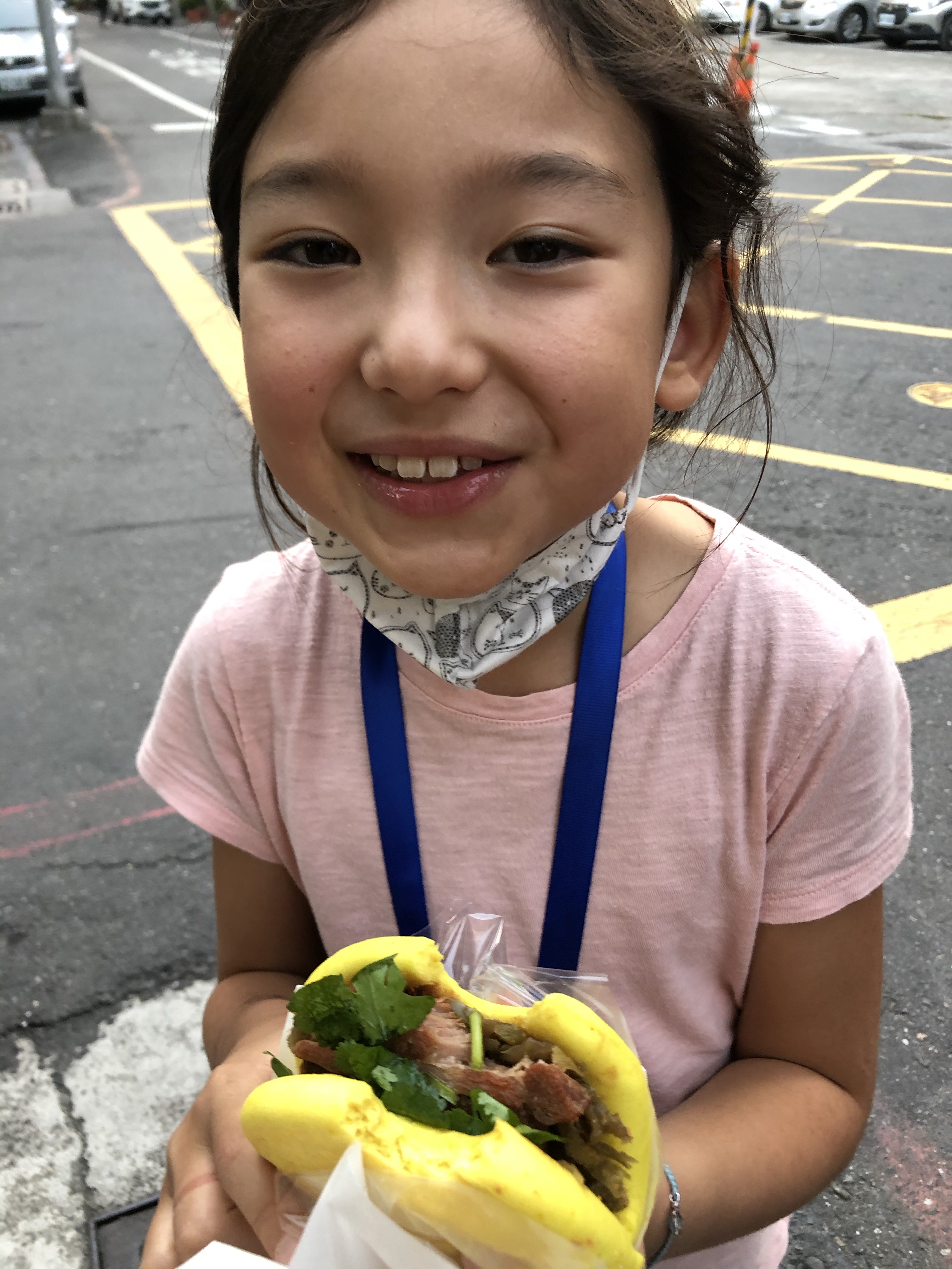 The proprietor told us he uses an age old recipe and type of vegetable that is no longer used in the typical buns. It is completed with a generous scoop of sweet peanut powder, which is key, and sprigs of fresh cilantro. Our girl approves!