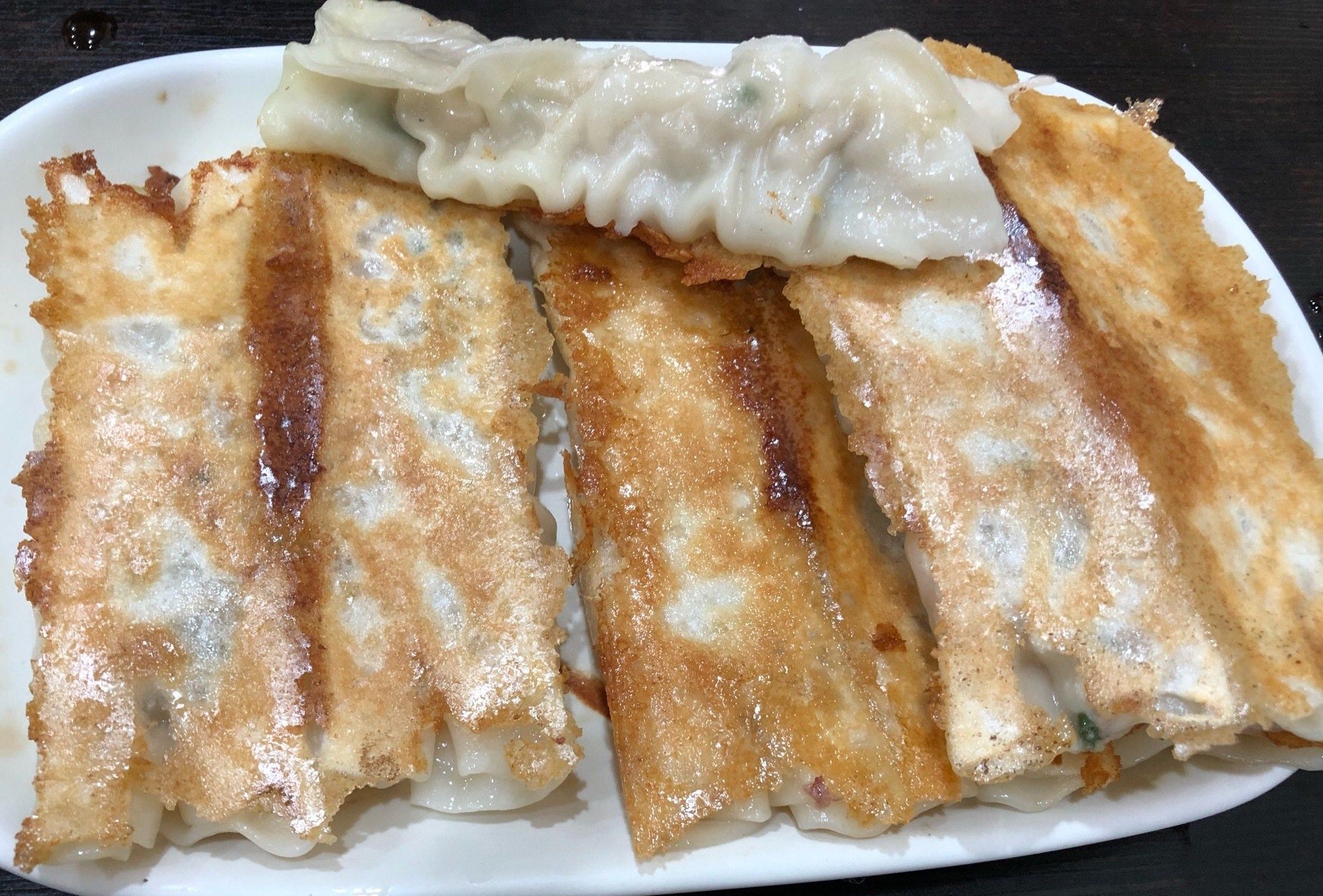 Steamed Fried Buns (生煎包) and Dumplings (鍋貼) – These fluffy and crispy buns containing vegetables and pork hail from China via northern Chinese who immigrated to Taiwan post-World War II. They are pan fried and steamed at the same time in a giant covered griddle. The key is a generous amount of water that is poured in during the cooking process to steam the buns under cover. This makes the dough fluffy and chewy at the same time. Once the water evaporates, the griddle crisps the bottom of the buns to give it that crunch. Our resident food connoisseur is very particular about the filling, requiring the perfect combination of correctly diced cabbage and seasoned meats. There is an equivalent dumpling version made oblong with thinner dumpling skin but cooked in a similar manner and just as tasty.