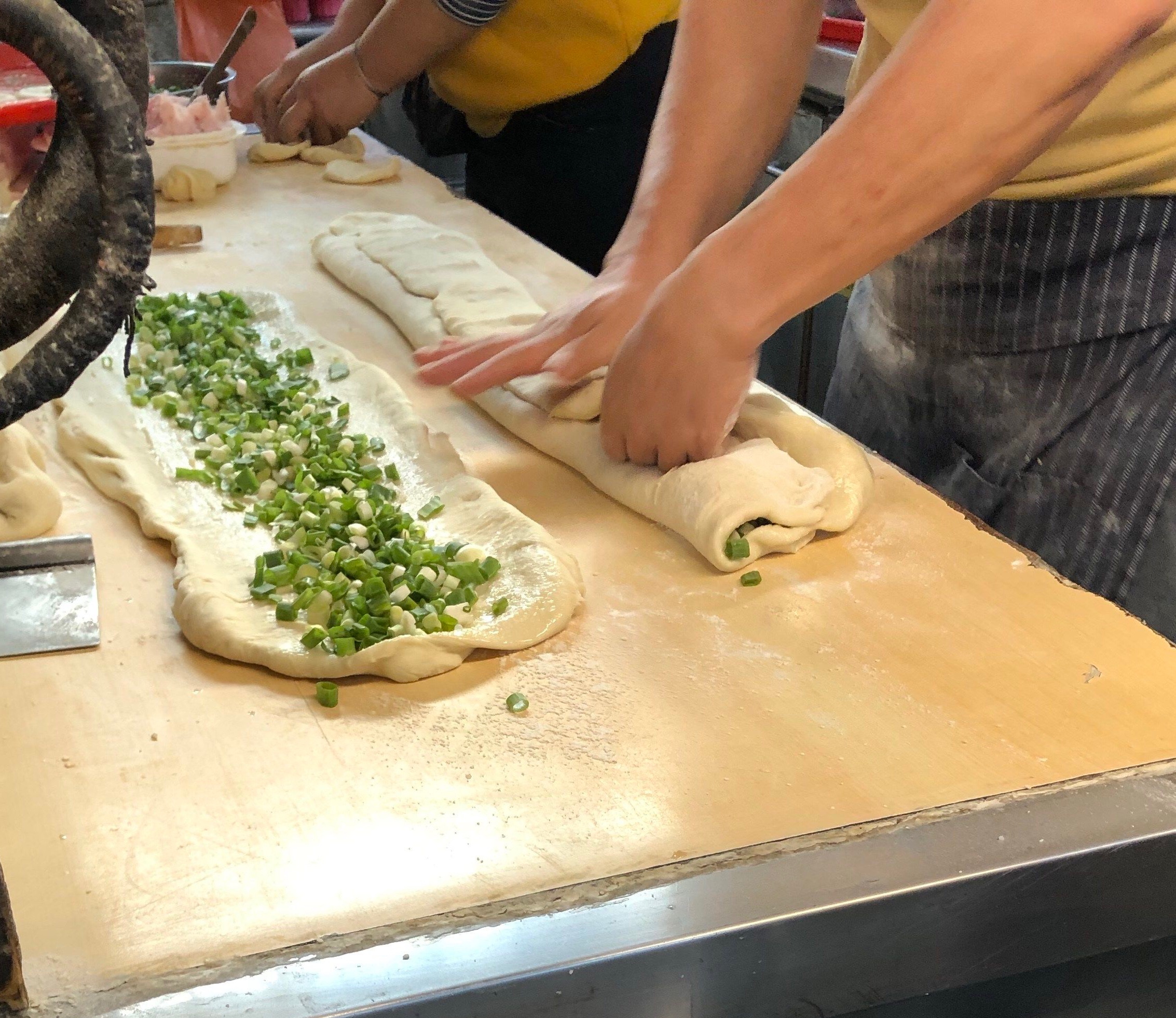 Black Pepper Buns (胡椒餅)– Tandoor-baked buns with sesame seed exterior over-stuffed with green scallions and heavily seasoned black pepper pork. The buns are cooked on the interior wall of the tandoor oven, heated by wood charcoal. The pronounced black pepper flavor, scallions and five spice give this bun quite a punch. The hot juices will also scorch your mouth if you bite into one straight from the oven. There will usually be a queue of folks eager to get one straight from the oven.