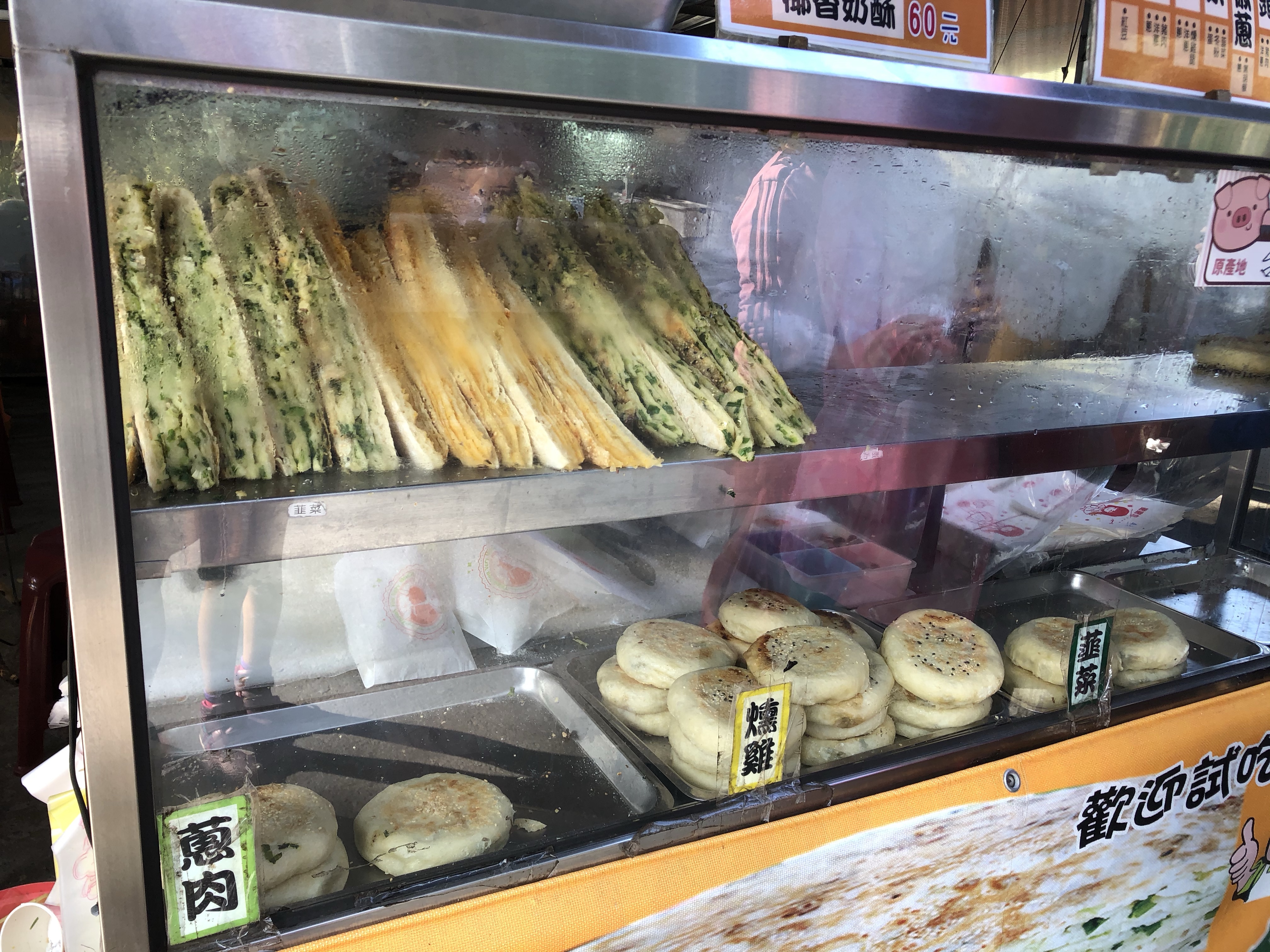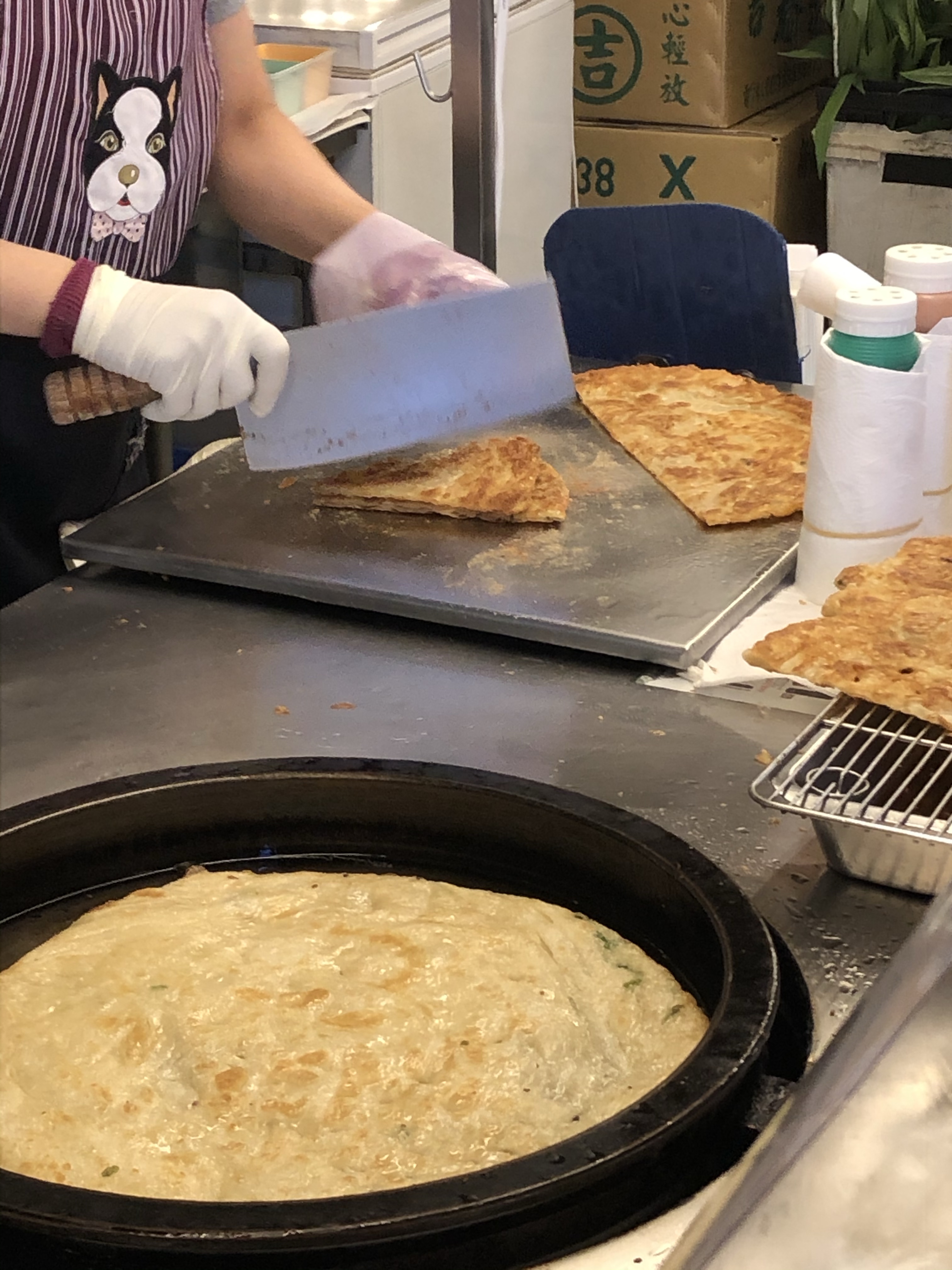 Scallion Pancakes (蔥油餅) – Scallion pancakes alone come in numerous formats of crispy, oily, savory goodness. I could have devoted a whole blog to them but they are a night market staple. There’s the giant pancakes either stuffed or sprinkled with green onions. There’s the flaky version (抓餅) (not pictured yet) that gets fluffed to expose its multiple layers, which is my favorite. There’s also the kind that’s stuffed and rolled into thick pancakes. Then there are those that uses scallion pancakes as the wrapper for a roll stuffed with braised beef, roast duck or pork. The options seem endless with this flatbread.
