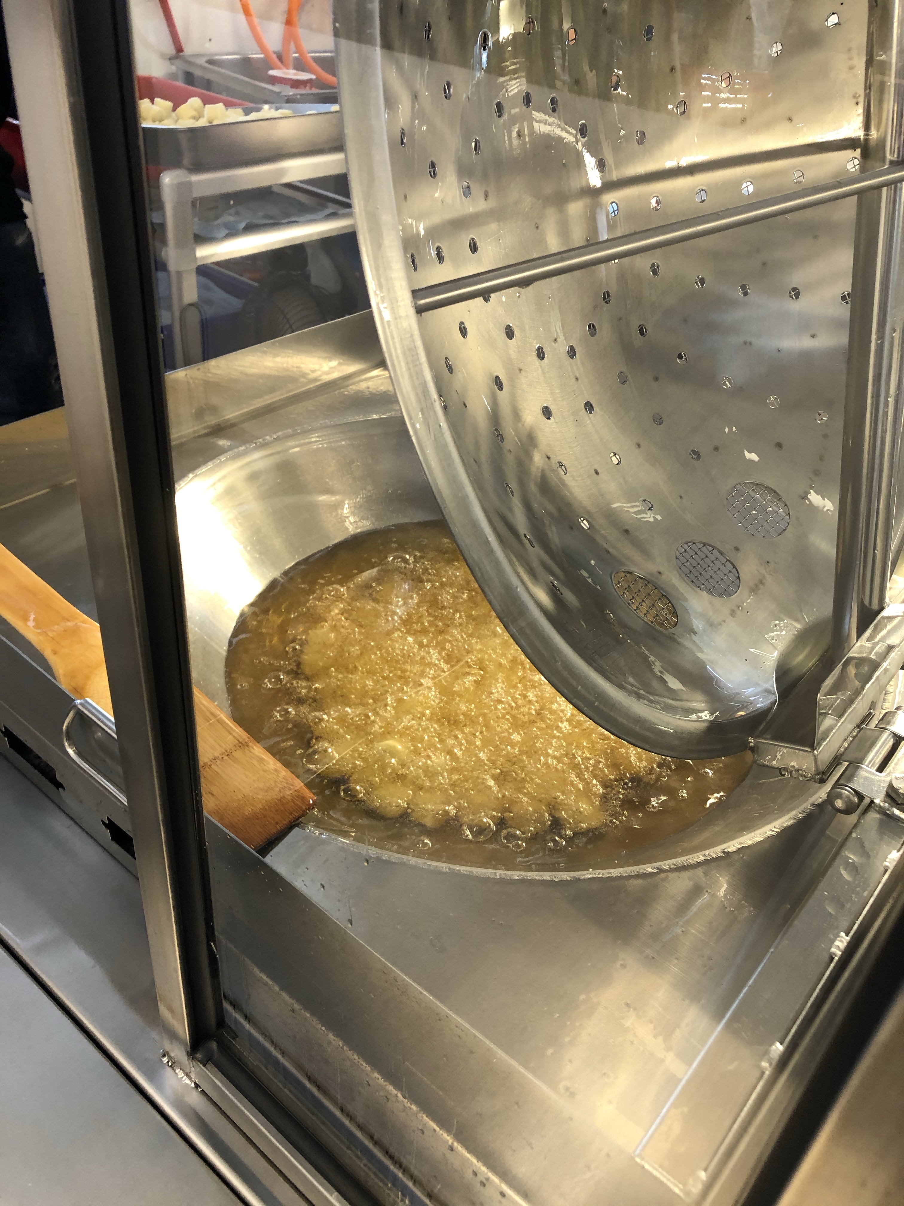 Fried chicken steak is a massive piece of fried boneless chicken that has been marinated in house special sauces and then fried with a light, crispy batter that is then seasoned with a combination of stall-specific spice mixes. This whole category of fried foods takes the American fried chicken to another level, by far tastier and juicier than the American original, according to my daughter, the food connoisseur. Of course, this wouldn’t be street food if it wasn’t either on a stick or can be eaten with a stick.