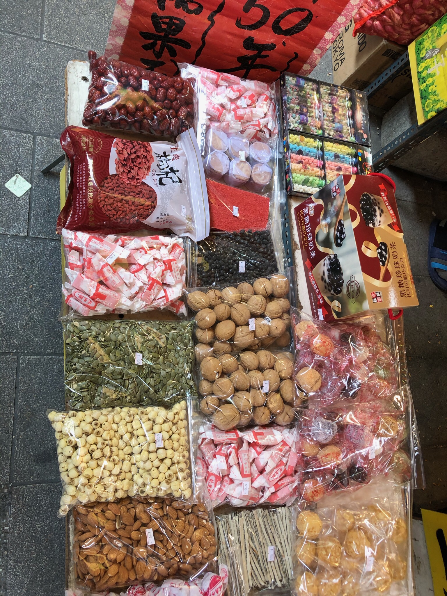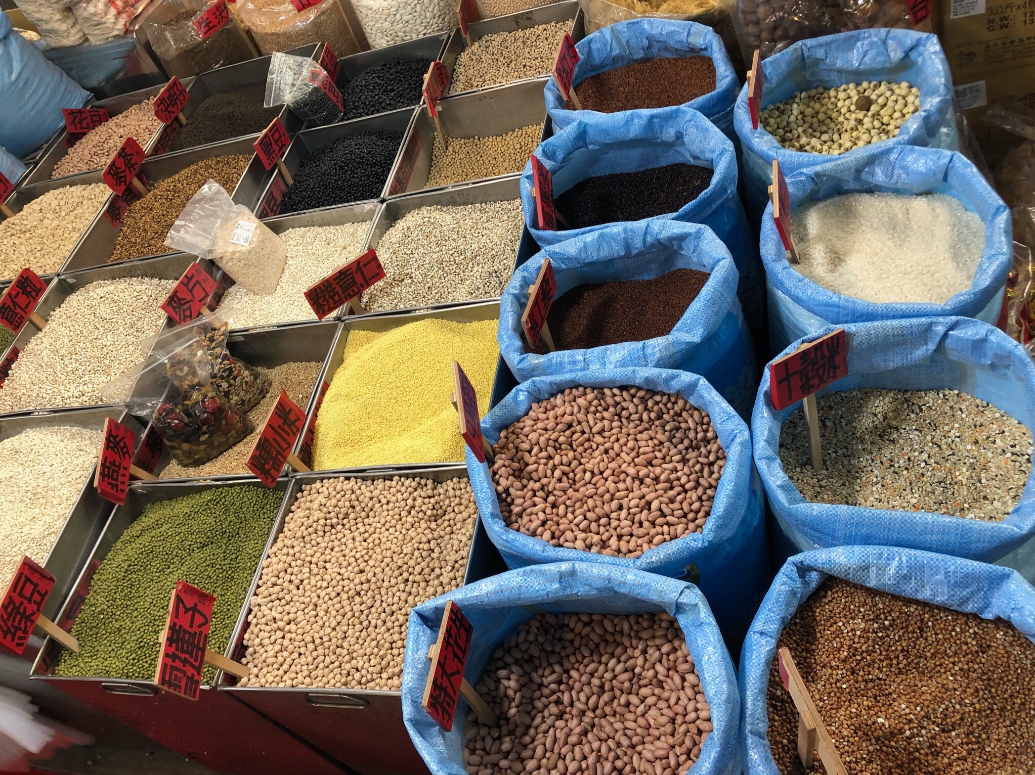 These markets are also especially festive during the Lunar New Year as people stock up on bulk candy and other supplies. The bulk candy bins are overflowing with such variety and the proprietors want people to sample the candies. This is a delight for the kids as their eyes survey the candy varieties.
